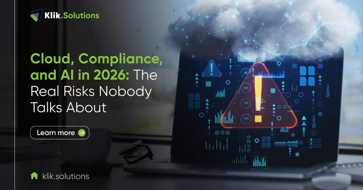 The real risk in 2026 isn’t adopting cloud or AI too quickly. It’s assuming yesterday’s controls still apply. Blind spots don’t just disappear. They compound quietly. Organizations that address cloud compliance risks 2026, data privacy AI, and enterprise AI risk management now will innovate with confidence later. Organizations design practical AI governance, reduce AI compliance risks, and address cloud security challenges in 2026 through clarity, structure, and shared accountability. Reach out to your Klik Solutions Advisor today and book your Cloud and AI Risk Assessment to uncover blind spots before they become costly surprises. Frequently Asked Questions   What are the biggest cloud compliance risks in 2026? The biggest risks come from lack of visibility, unclear ownership, and outdated compliance frameworks that do not account for AI-driven data creation and distributed cloud usage.   How does AI complicate compliance requirements? AI generates new data artifacts such as prompts, logs, and outputs that often fall outside existing governance models, creating gaps in accountability and auditability.   Are cloud providers responsible for AI compliance? Providers handle parts of the infrastructure, but organizations remain responsible for how data is used, governed, and retained within those services.   How can businesses govern AI without slowing teams down? By embedding guardrails, automation, and clear policies into workflows so governance supports speed instead of blocking it.   What regulations should companies prepare for in 2026? Organizations should expect increased scrutiny around AI transparency, data residency, privacy protections, and accountability across cloud environments.
